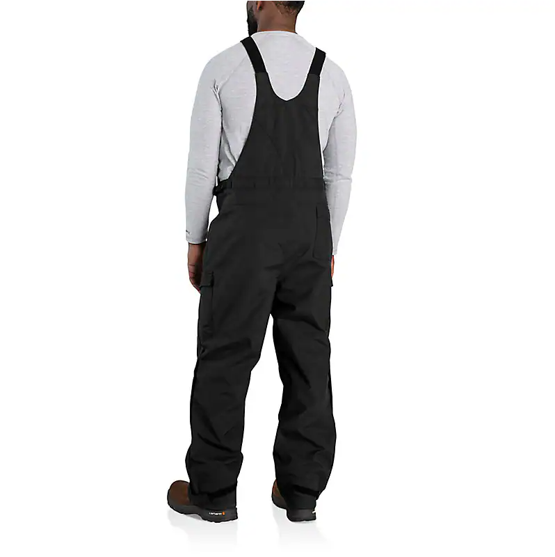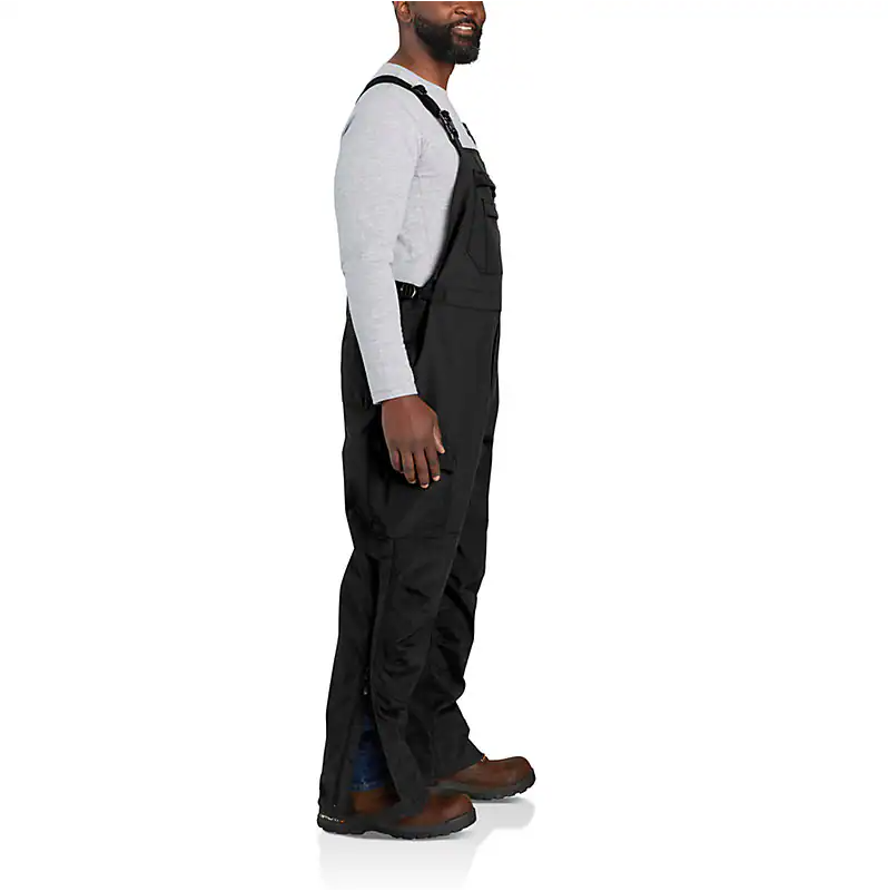These men's bib overalls are built for hard work in hard rain. Rated 10k/10k, they're made of durable heavyweight nylon that's waterproof, breathable, and wind-resistant. Double-layer knees accommodate knee pads, while an adjustable waist and suspenders let you find just the right fit. The generous cut is the roomiest Carhartt offers.